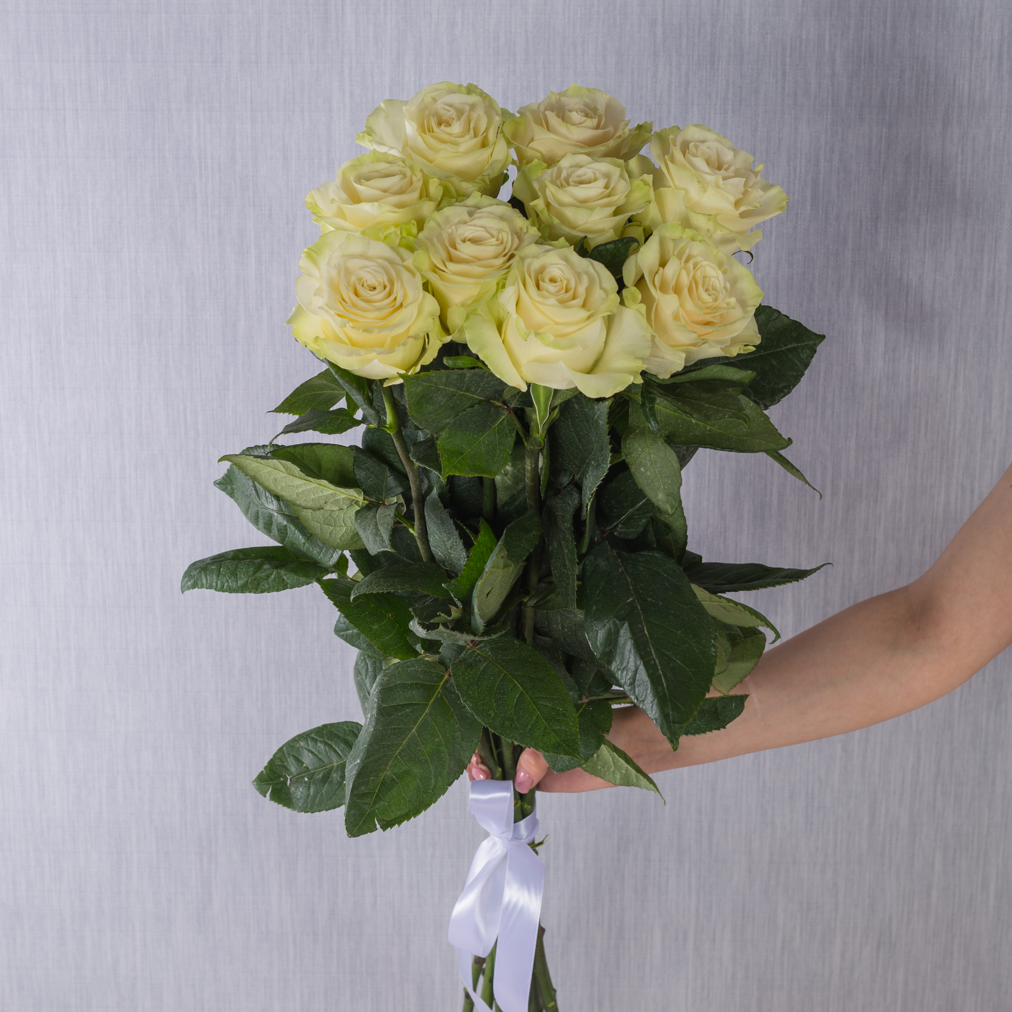 Букет из 9 крупных Белых крупных роз Эквадор 60 см арт. 36401