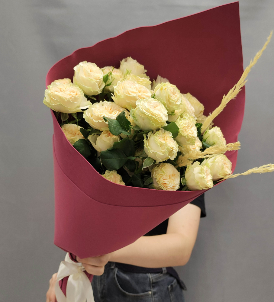 Букет из кустовых пионовидных роз кремового цвета арт. 47529