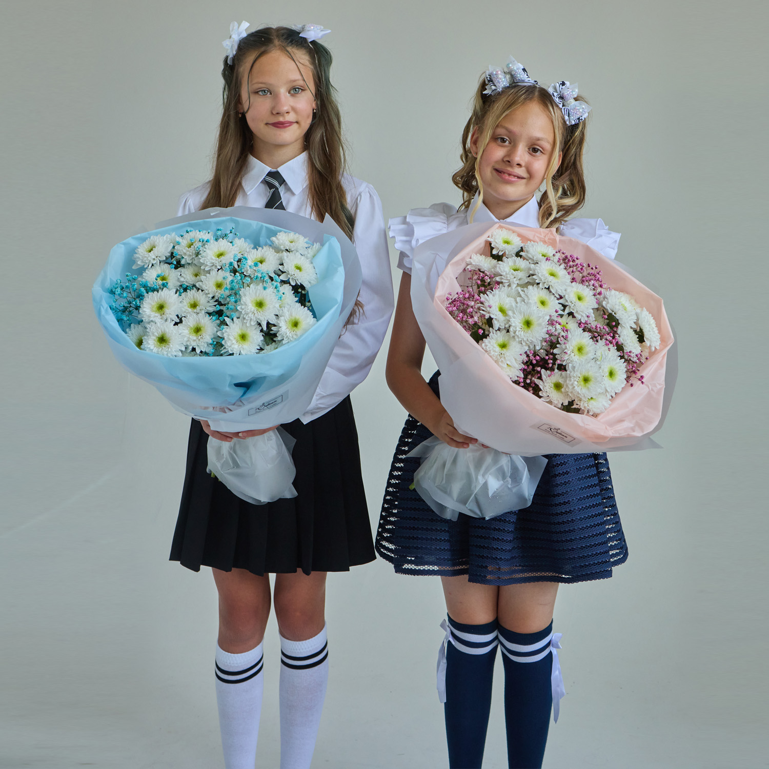 Он подойдёт в качестве подарка учителю на 1 сентября, станет красивым презентом для мамы или знаком внимания в благодарность. Универсальность композиции позволяет дарить её как в школьные праздники, так и на день рождения или в качестве тёплого жеста для близкого человека. Дополнительно можно выбрать такой же букет в голубой гамме с нежной голубой гипсофилой.