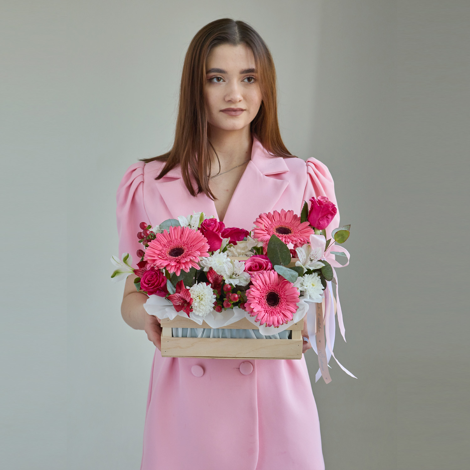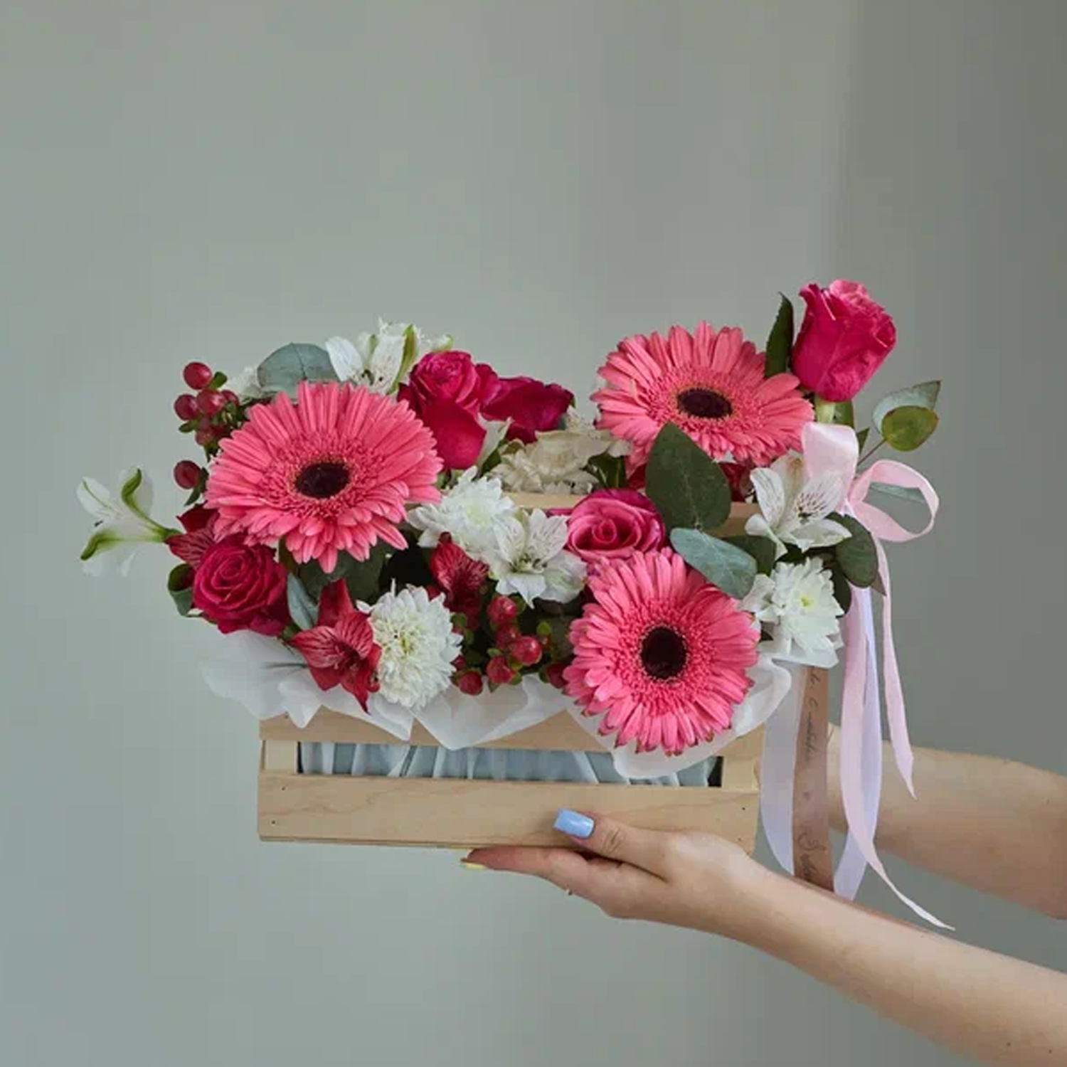 • Ящик с цветами "Свидание с ангелом" из роз и эустомы арт. 7753
