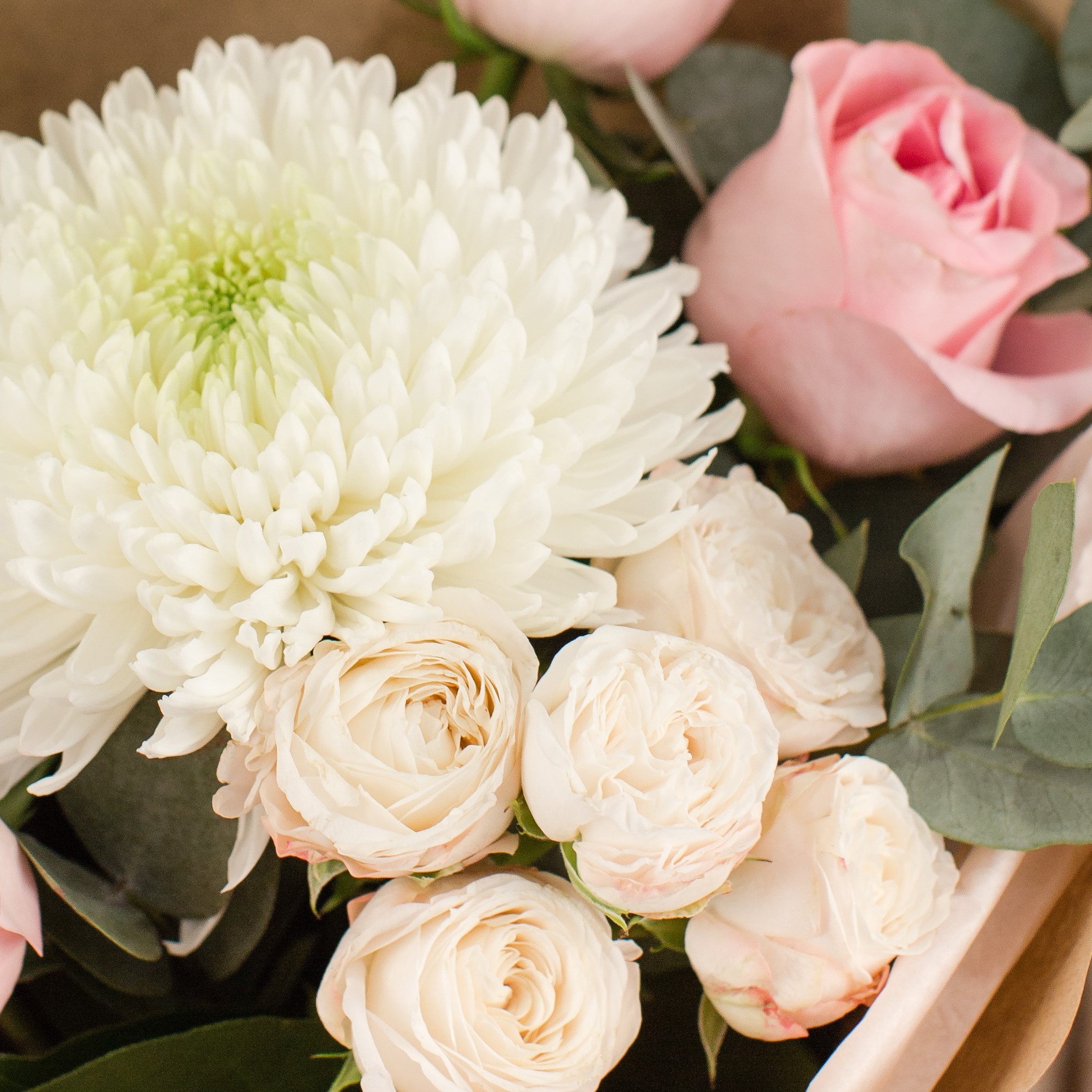 Символика белого и нежно-розового цвета в этом букете придает ему особую значимость. Белый цвет символизирует чистоту, невинность и гармонию, а нежно-розовый цвет ассоциируется с нежностью и романтикой. Этот букет идеально передает эти ценности и подходит для самых разных событий и праздников. Он станет прекрасным подарком для любимой женщины, мамы, сестры или подруги.